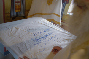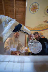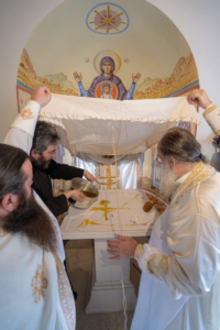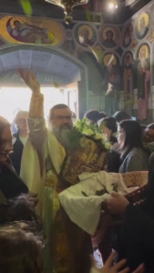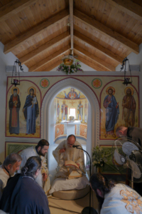 Επίσης ευχαριστούμε τον Πανοσιολογιώτατο Αρχιμ. Ιωακείμ Καρανδινό Πρωτοσύγκελο της Ι. Μητροπόλεώς μας που είναι κοντά μας και διακόνησε ετοιμάζοντας τα των ιερών Εγκαινίων.