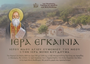 Ομιλία του Πανοσιολ. Αρχιμ. Μακαρίου, Ηγουμένου της Ι. Μονής Κουδουμά, κατά τα εγκαίνια του Ι. Ναού του Αγίου Ευμενίου του Νέου στην Ιερά Μονή Κουδουμά.