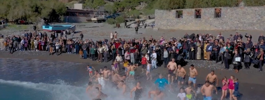 Μετά τη Θεία Λειτουργία, ακολούθησε ο καθαγιασμός των υδάτων στην παραλία της Μονής. Η κατάδυση του Τιμίου Σταυρού υπενθύμισε το βαθύ πνευματικό μήνυμα της ημέρας: τον φωτισμό της ανθρώπινης ψυχής και τον καθαγιασμό, όχι μόνο των υδάτων, αλλά και ολόκληρης της κτίσης. Αρκετοί πιστοί, άντρες και γυναίκες, αψηφώντας τα παγωμένα νερά, βούτηξαν για να ανασύρουν τον Τίμιο Σταυρό, εκπληρώνοντας προσωπικά τάματα και λαμβάνοντας την ευλογία της ημέρας.