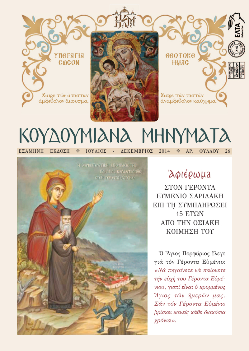 Ομιλία του Πανοσιολ. Αρχιμ. Μακαρίου, Ηγουμένου της Ι. Μονής Κουδουμά, κατά τα εγκαίνια του Ι. Ναού του Αγίου Ευμενίου του Νέου στην Ιερά Μονή Κουδουμά.